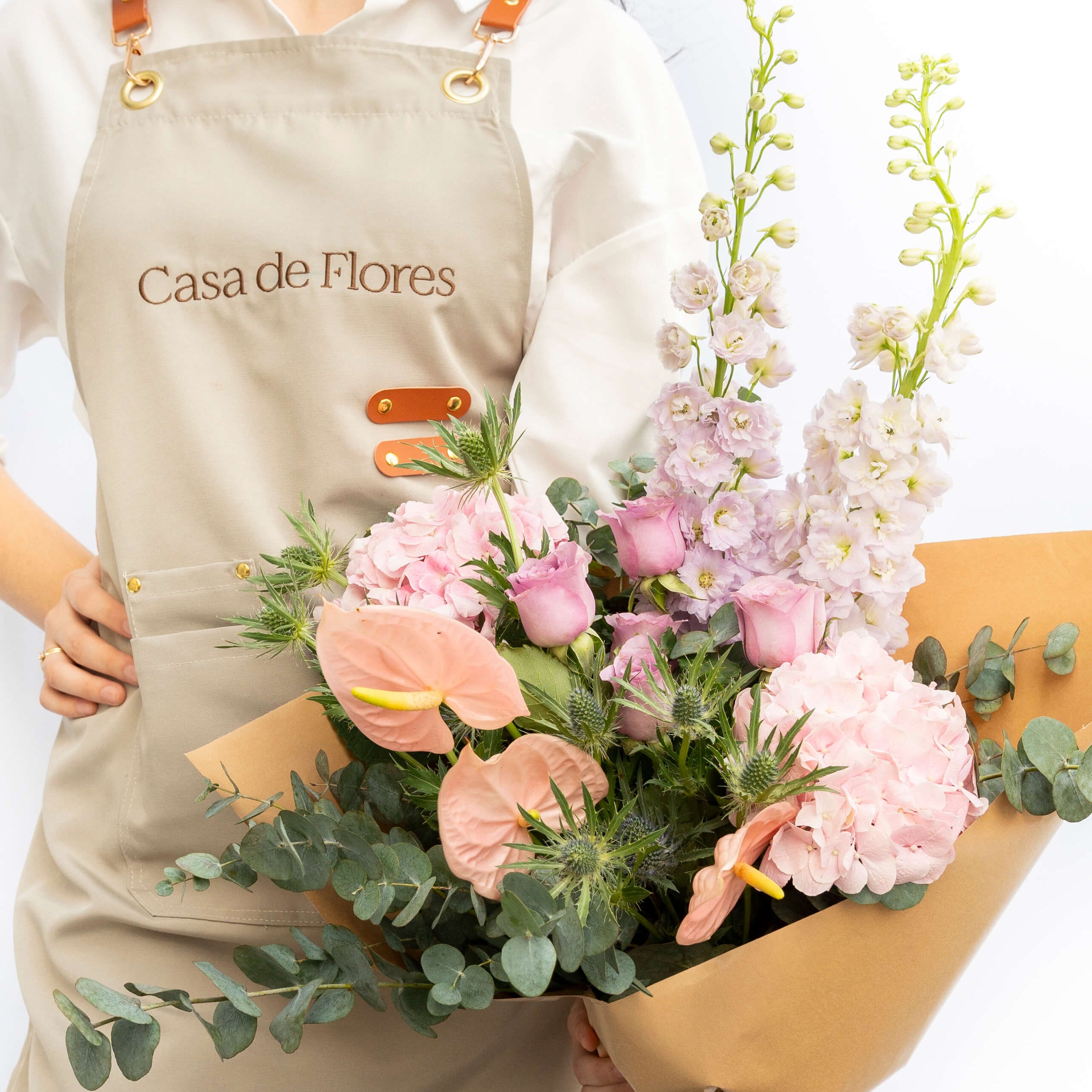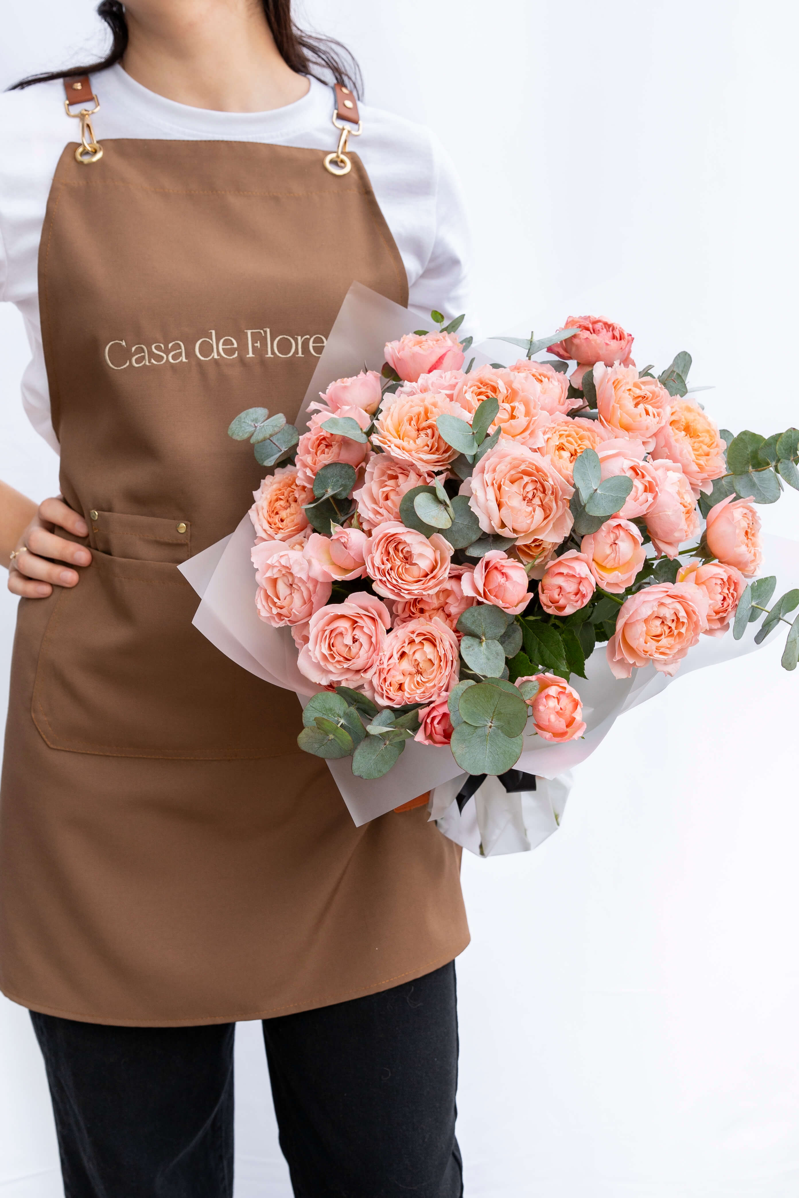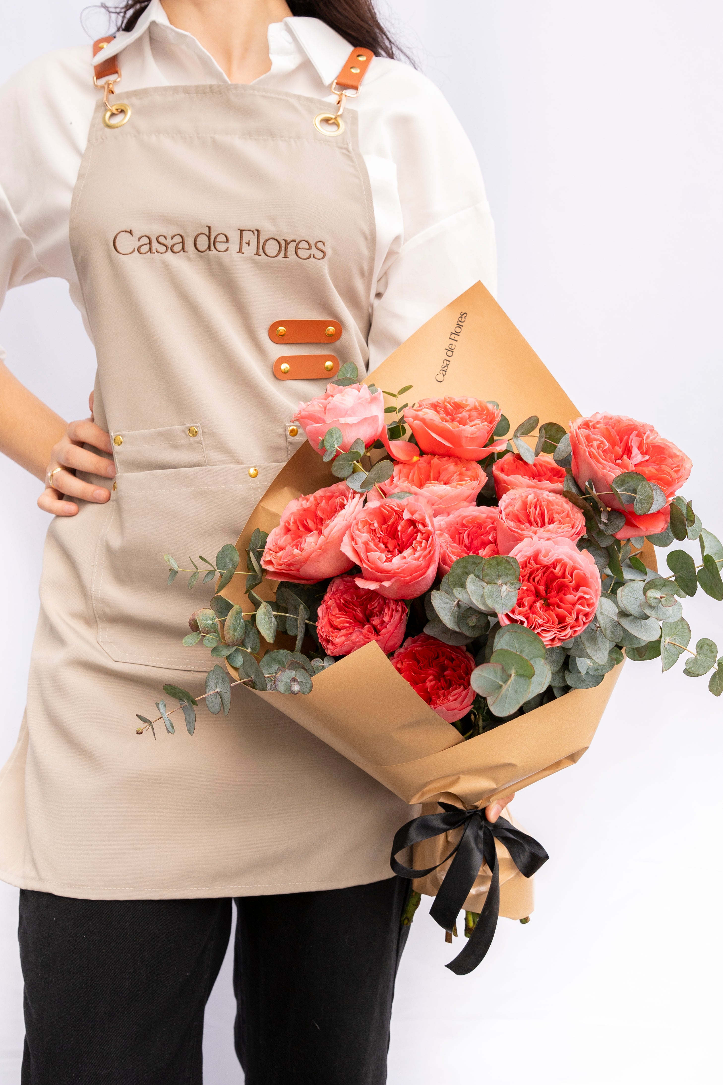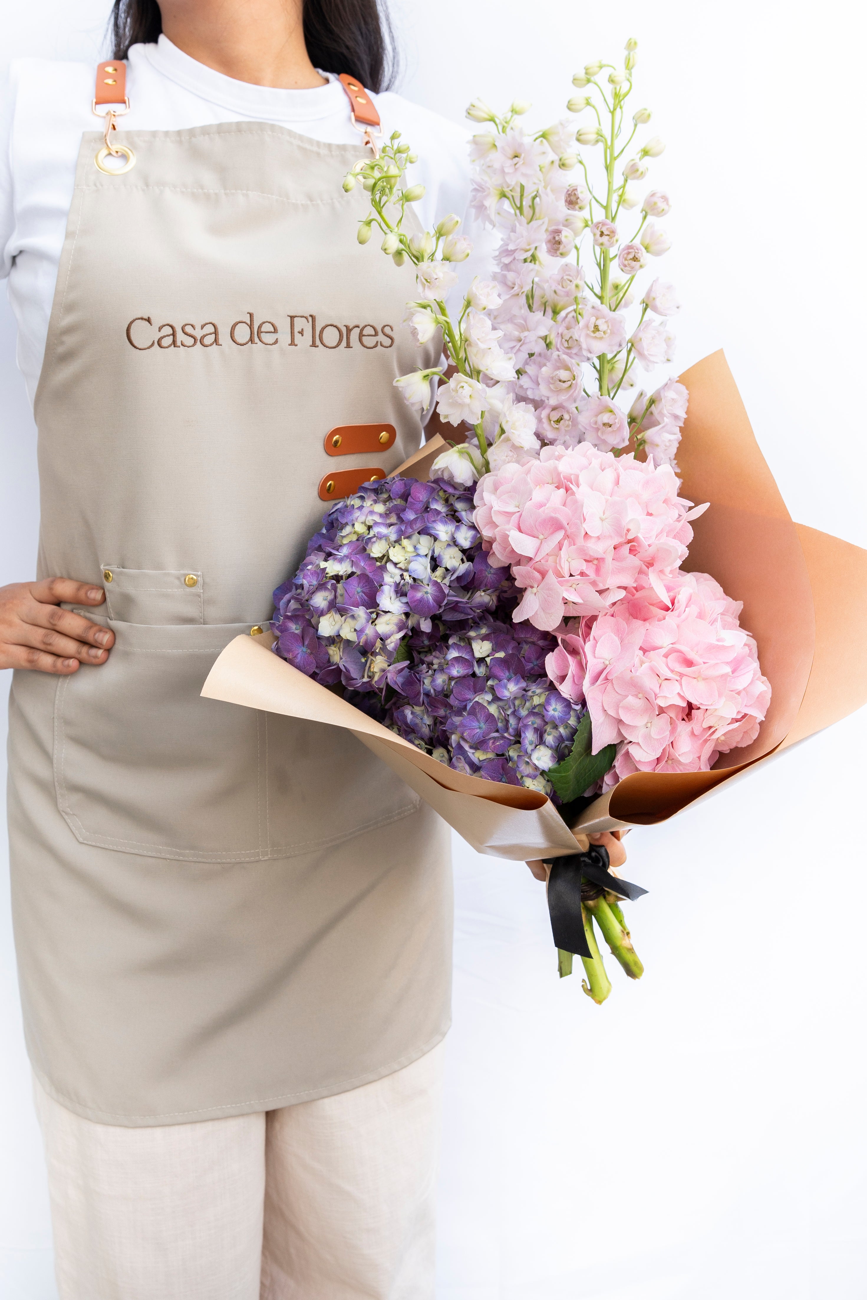 Every signature arrangement starts in the atelier, not a template. We work flower by flower, adjusting height, texture, and spacing until the shape holds. Clean, modern, and unmistakably Casa de Flores.
