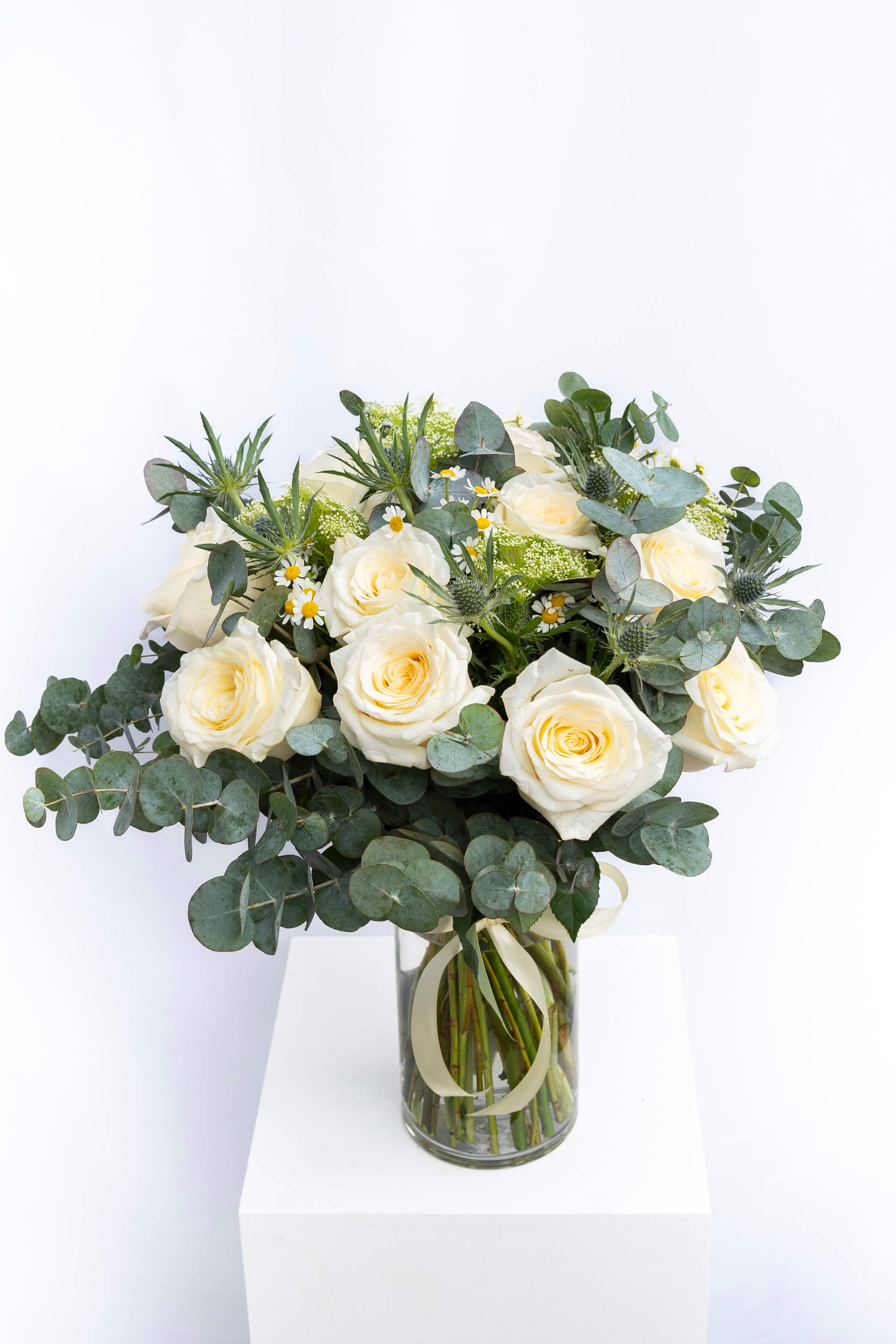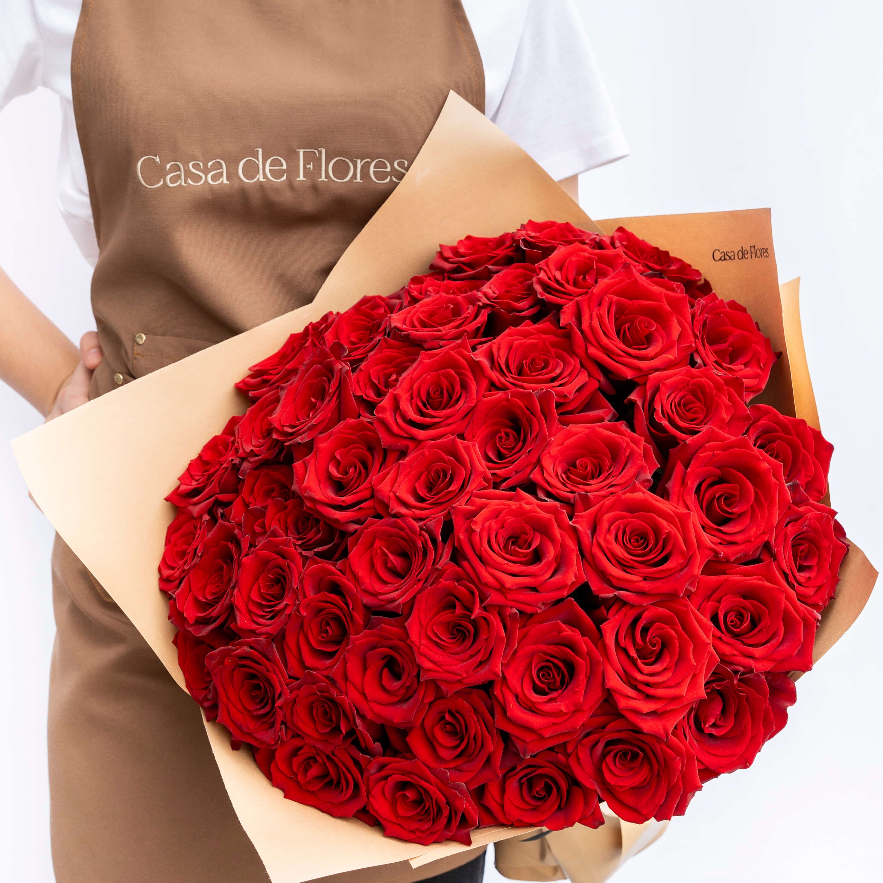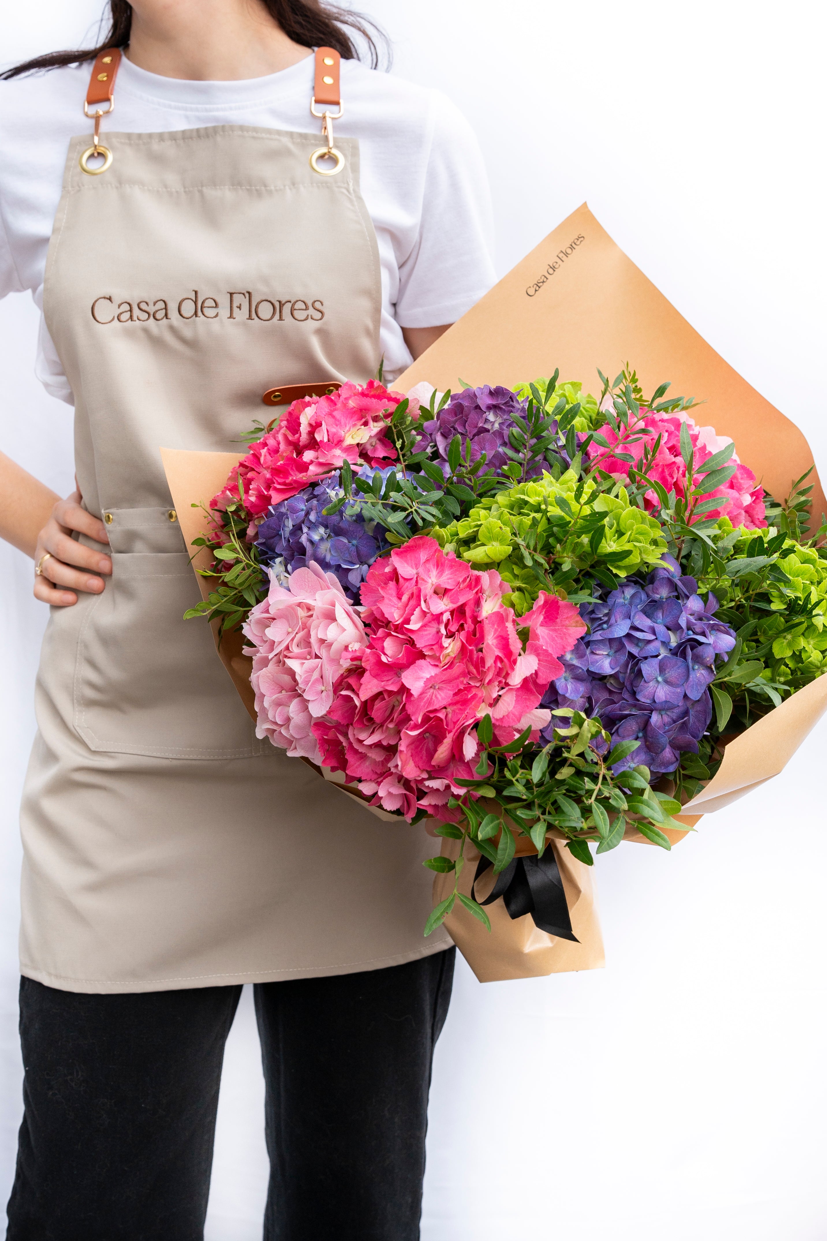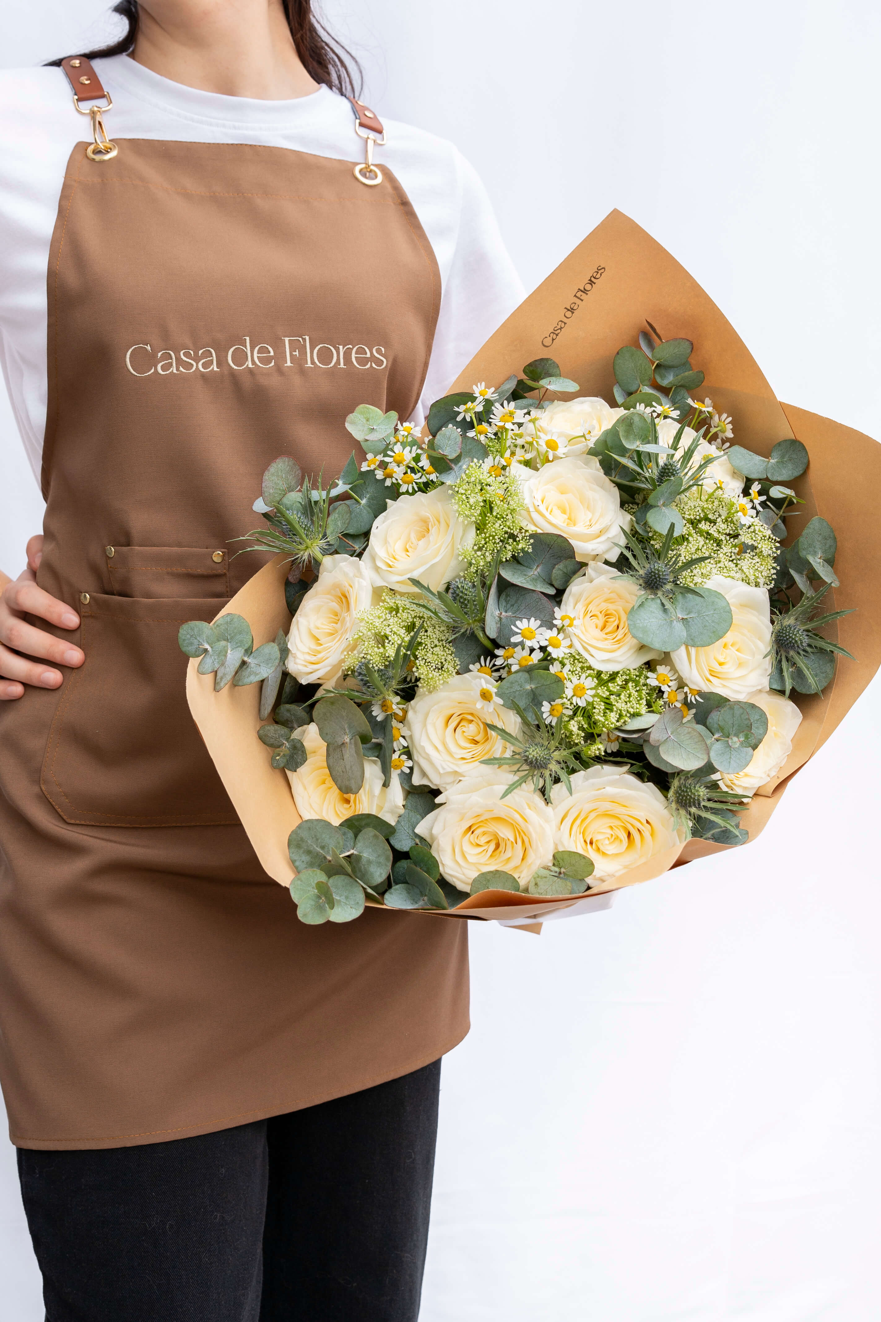 Every signature arrangement starts in the atelier, not a template. We work flower by flower, adjusting height, texture, and spacing until the shape holds. Clean, modern, and unmistakably Casa de Flores.