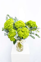 This is “wow” in green. Crisp emerald hydrangeas with eucalyptus accents, designed to feel bold, calm, and high-end all at once. Minimal palette, maximum impact.