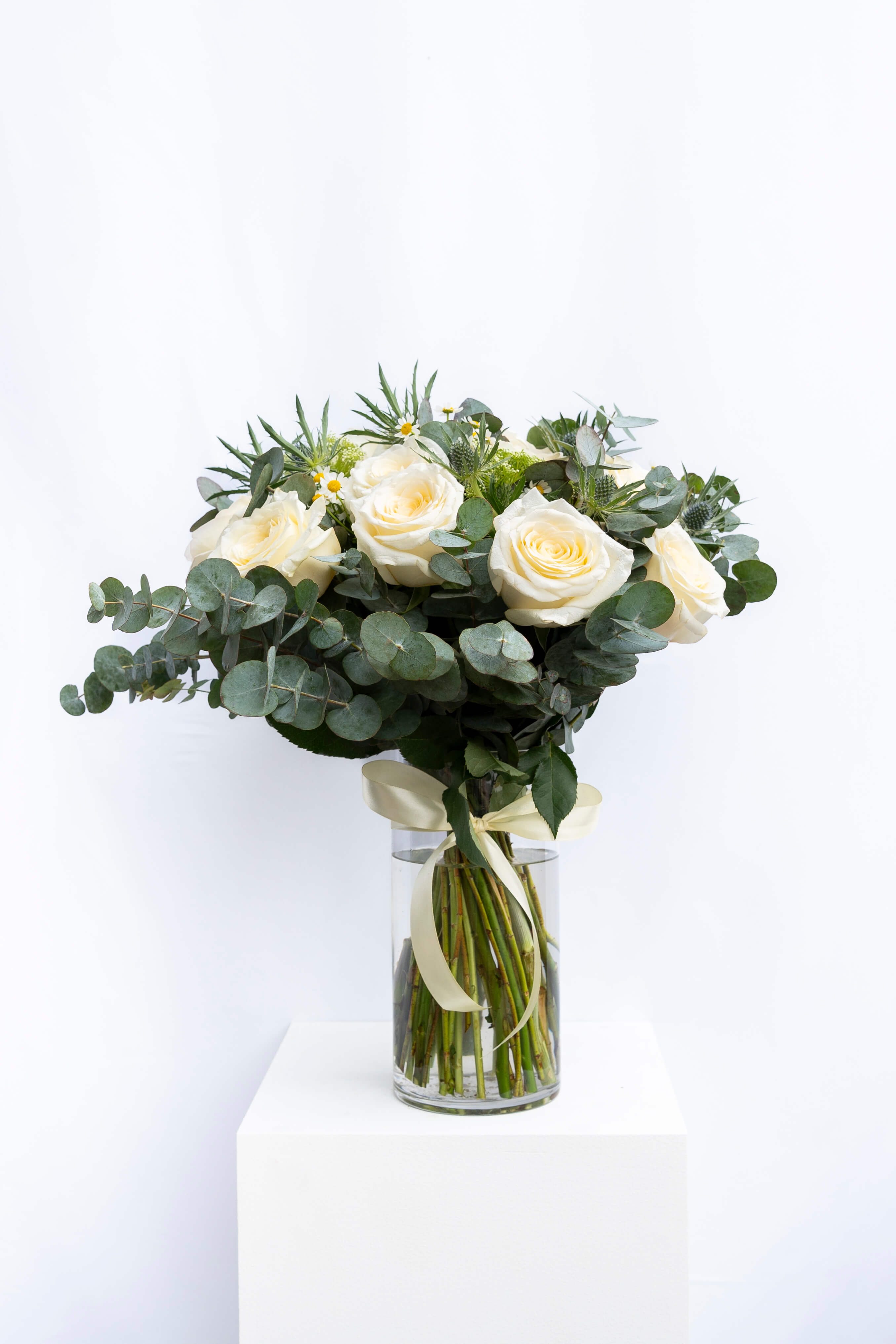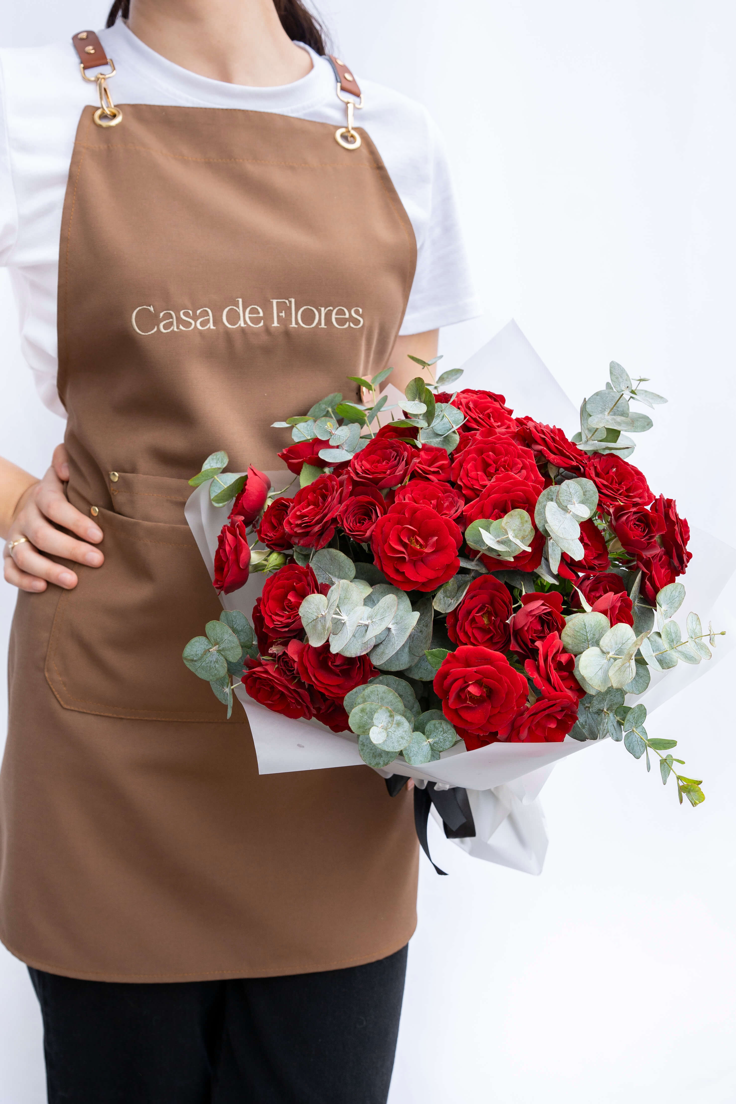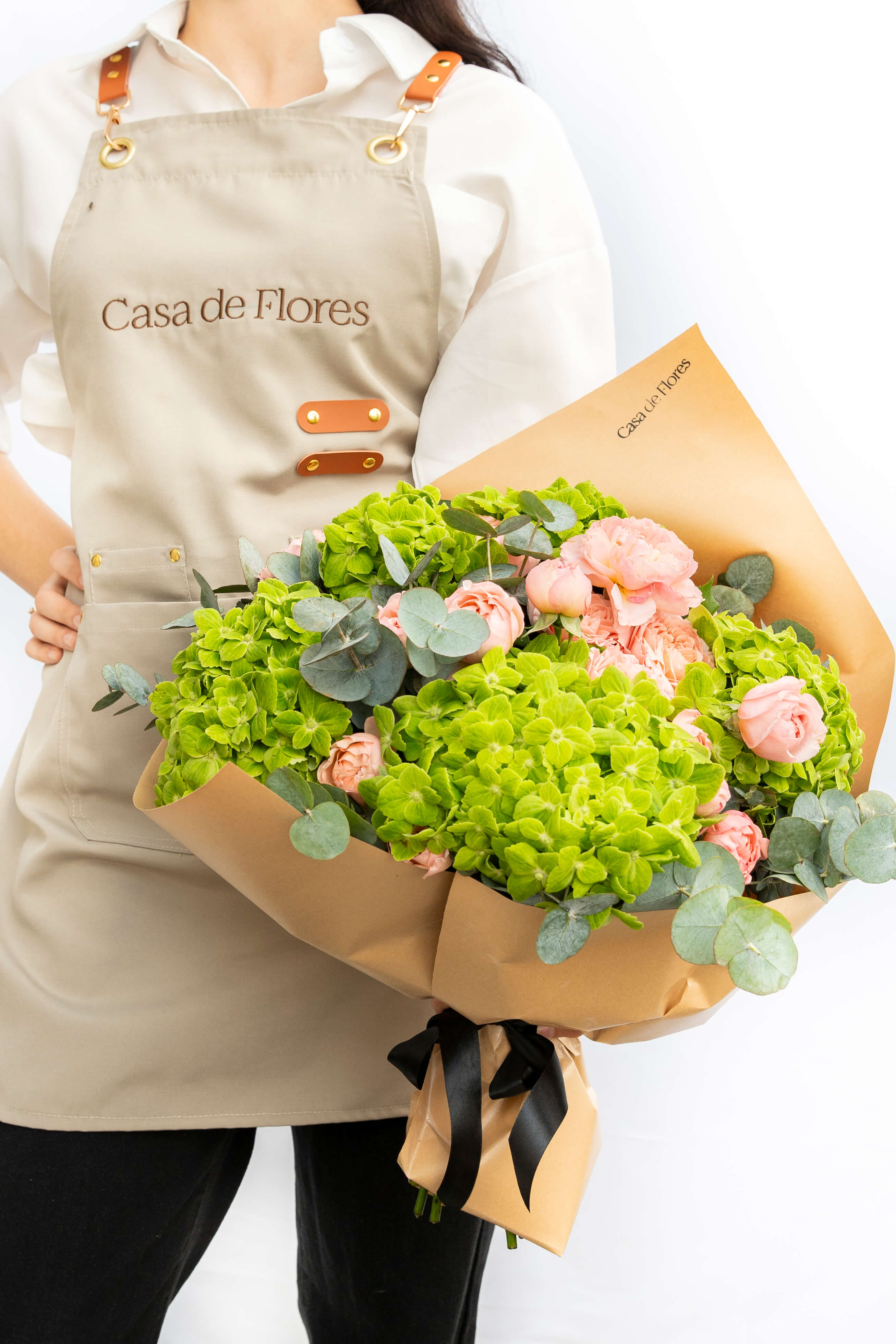 Every signature arrangement starts in the atelier, not a template. We work flower by flower, adjusting height, texture, and spacing until the shape holds. Clean, modern, and unmistakably Casa de Flores.
